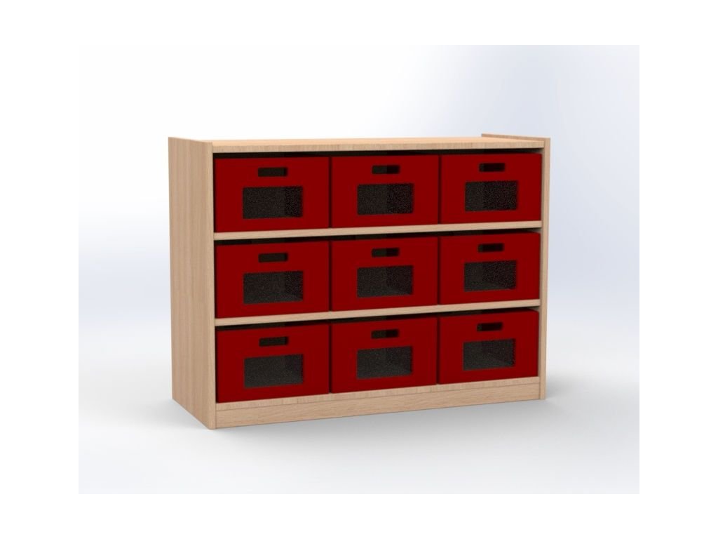 Skříňka se 2 vloženými policemi a 9 volnými zásuvkami