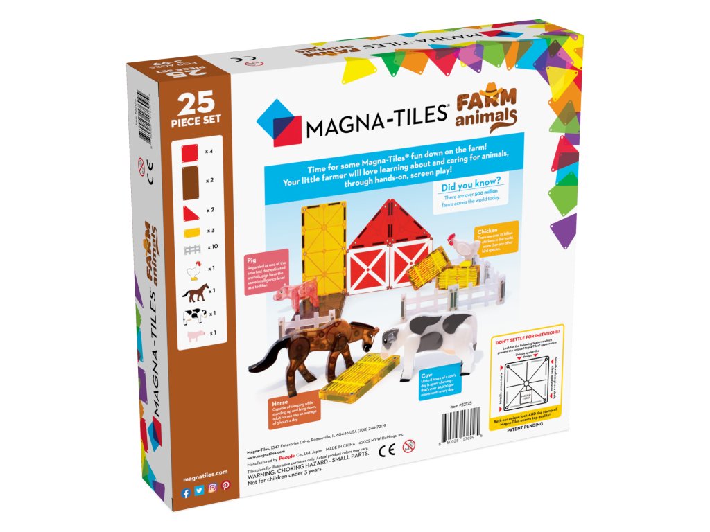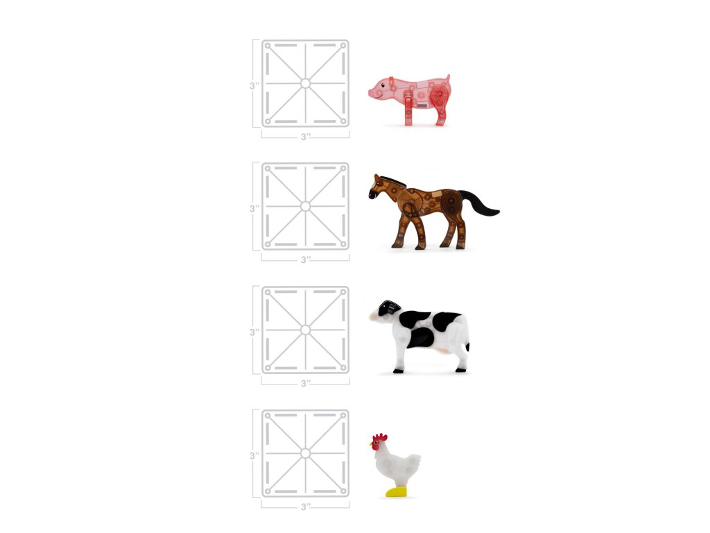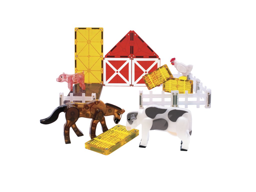 Je čas vyrazit na farmu s novou sadou Farm Animals, která je součástí Magna-Tiles. Malý farmáři si užijí péči o čtyři zvířátka (kuře, kůň, kráva, prase), práci ve stodole i na pastvině prostřednictvím jedinečných dlaždic s realistickými detaily včetně magnetického plotu.