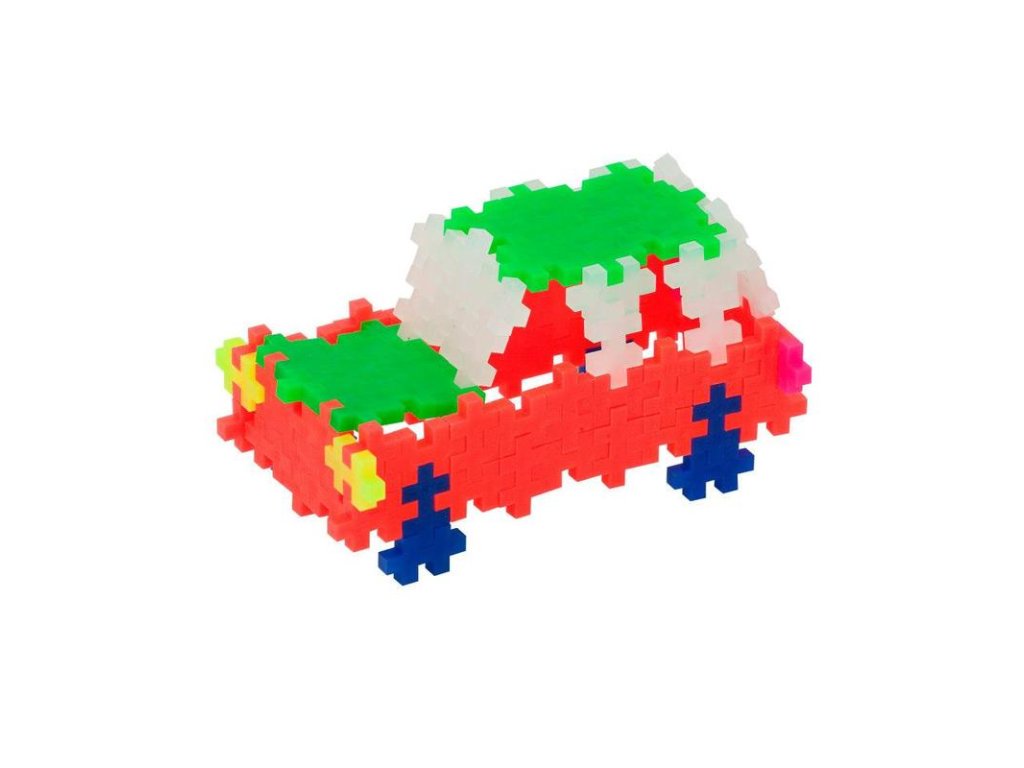 Balení obsahuje 600 kostiček - 500 pastelových a 100 neonových, základovou desku a barevnou brožuru se spoustou návodů na stavění.