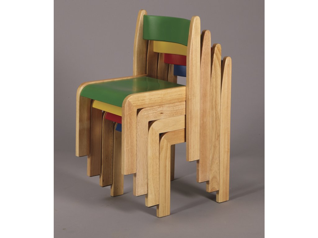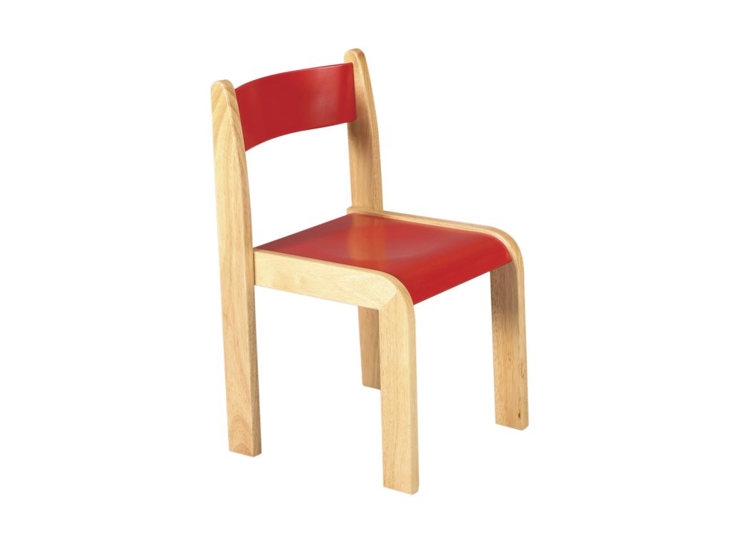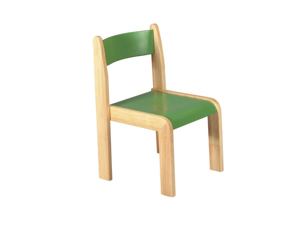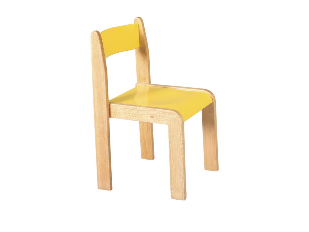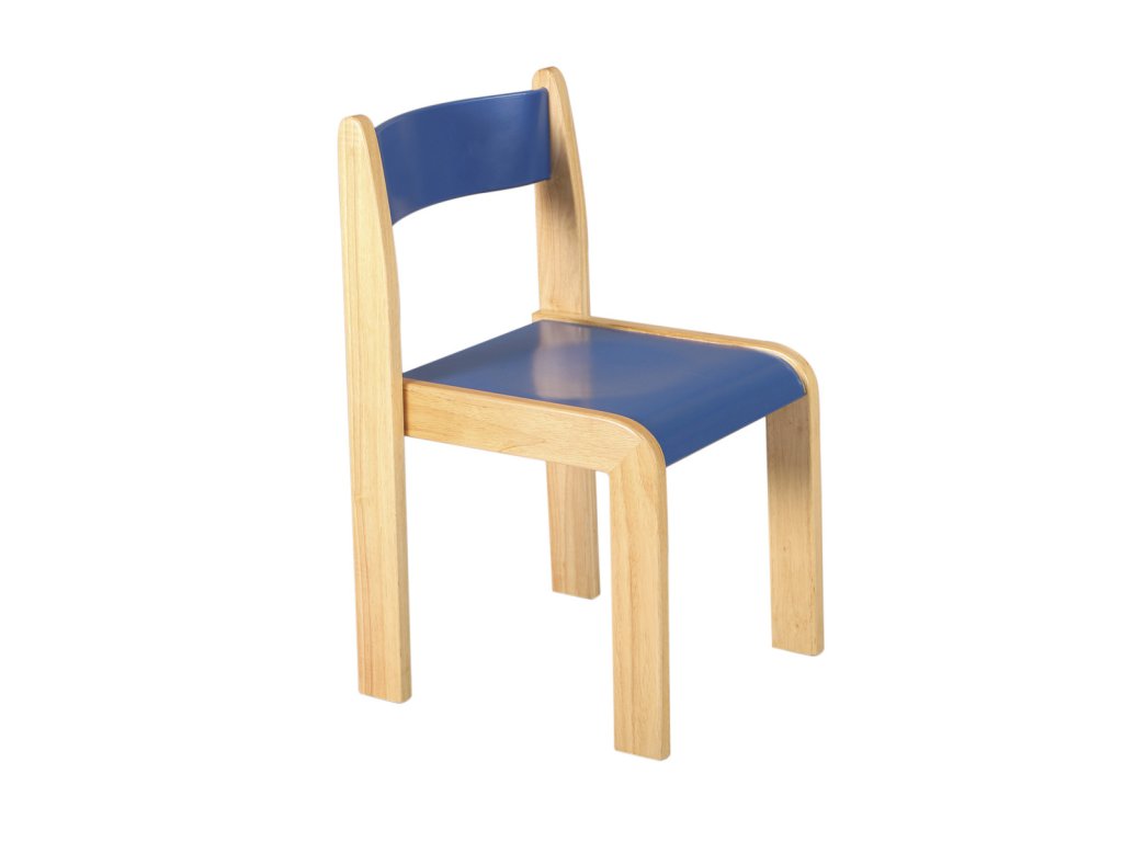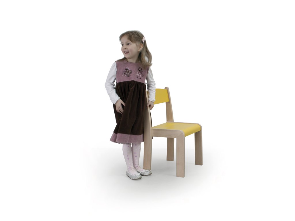 židle pro mateřské školky (jesle) s dřevěnou podnoží z masivu 20 × 60 mm, opěradlo a sedák z barevné překližky.