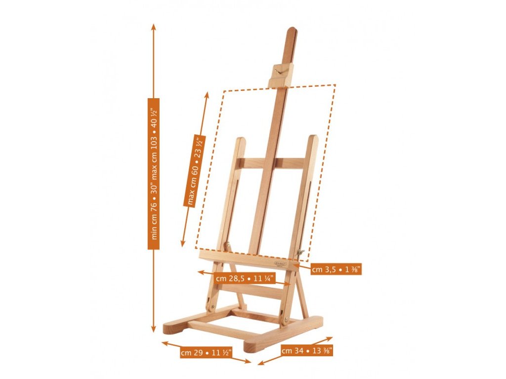 Stojan vhodný pro umístění na stůl či podložku. Je lehký a skladný, hodí se i do menších prostor, kde není pro běžný ateliérový stojan dost místa. Kvalitní provedení z masivního bukového dřeva, jednotlivé díly do sebe dokonale pasují a stojan je velmi stabilní. Různé možnosti polohování. Vyrábí italská značka Mabef.
