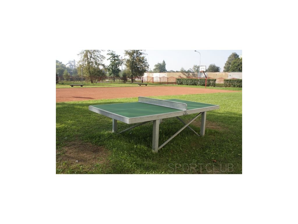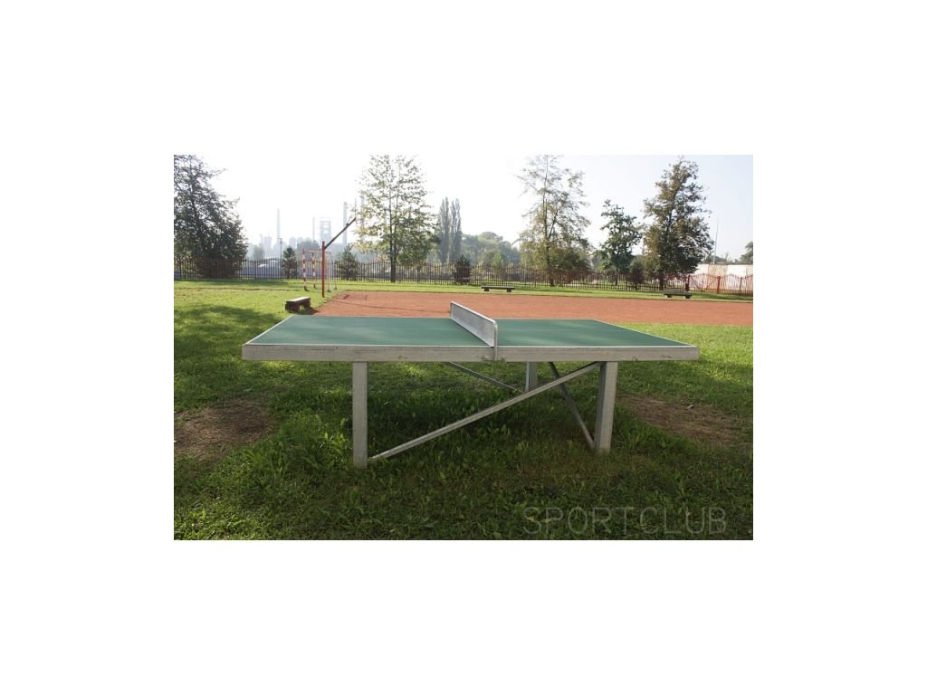 Kvalitní exteriérový, rekreační stůl na stolní tenis bez síťky. Stůl je určen pro penziony, hotely, školy, autocampy, sportovní haly a centra apod. Stůl se vyznačuje velmi robustním kovovým rámem, který je žárově zinkovaný + pevné robustní nohy z jeklu 80/80 mm. Desky stolu (vyrobené z lisované pryskyřice a křemičitého písku) o tloušťce 30 mm mohou být celoročně vystaveny povětrnostním vlivům počasí a UV záření, takže odpadá skládání stolu a přemisťování. Vzhledem ke své hmotnosti cca 360 kg může být použit i na veřejných prostranstvích a plně nahrazuje použití celobetonových stolů na stolní tenis. Stůl splňuje požadavky normy pro Stolní tenis ČSN EN 14468-1 třída D (rekreační sport). Stůl je připraven (pomocí úchytů) i k případnému ukotvení k betonové patce. Ke stolu lze přiobjednat vysoce odolnou kovovou síťku (položka 11409), která se uchycuje k rámu stolu pomocí šroubů. Dodávka stolu obsahuje 1 ks celosvařené konstrukce stolu a 2 ks pryskyřičné desky + 1 ks lepidlo. Pro ustavení stolu je nutné mít připravený rovný, zpevněný povrch. Návod na sestavení stolu dodáváme při dodávce stolu. Doporučujeme stůl na zimu přikrývat, prodlouží se tak jeho živostnost.