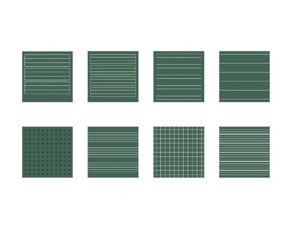 Pokud máte individuální požadavky, můžete si tabuli podle nich přizpůsobit. Zejména v případě nižších ročníků se jistě hodí možnost linkování, ať již potřebujete notovou osnovu, mřížku (rastr) či klasické linky. Všech 5 ploch tabule lze kombinovat. Popisná plocha tabule na fixy je pouze v barvě bílé, u tabule na křídu si však můžete vybrat barvu zelenou, černou či modrou. Posuv pojezdu je 60 cm, pokud potřebujete větší, zvolte řešení na pylonech.