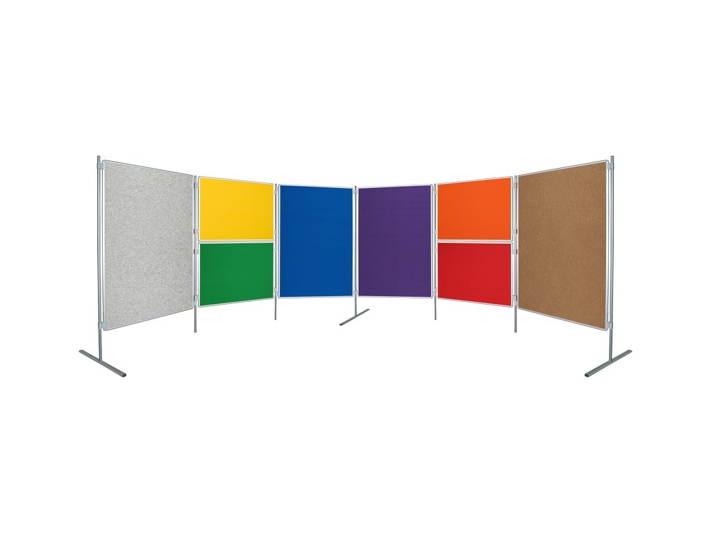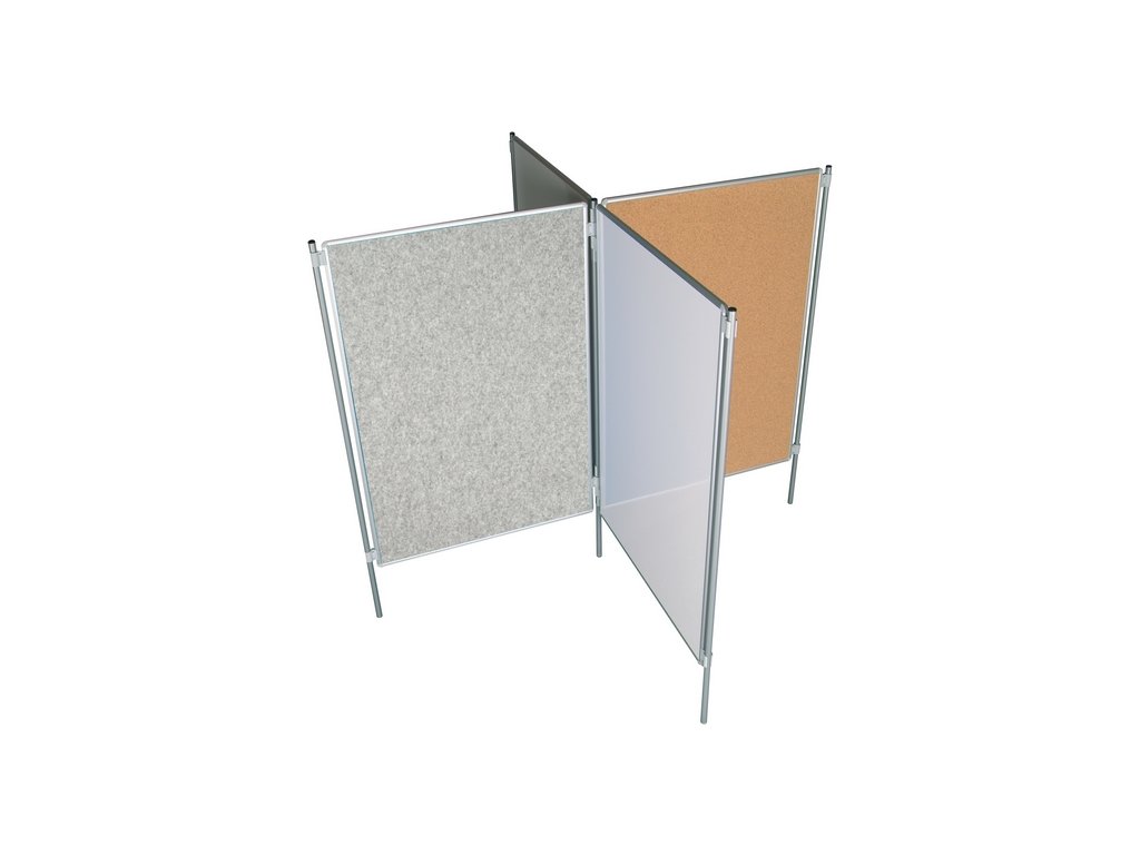 - Paraván je složen z oboustranné nástěnky a paravánových noh (nejsou součástí balení).