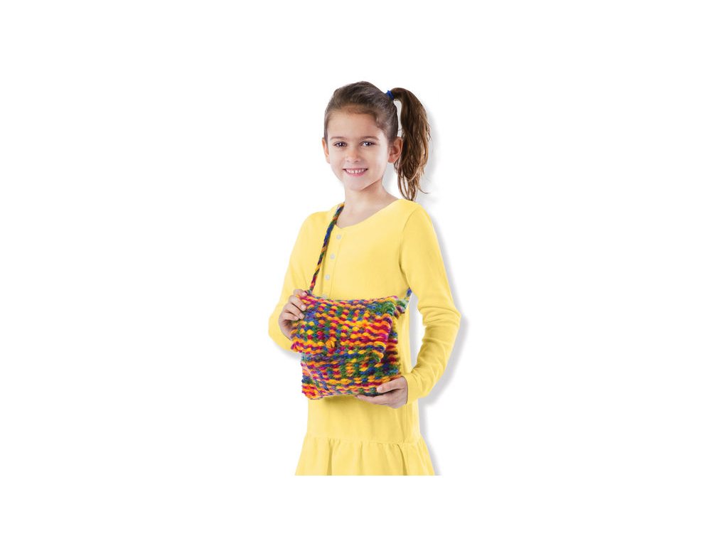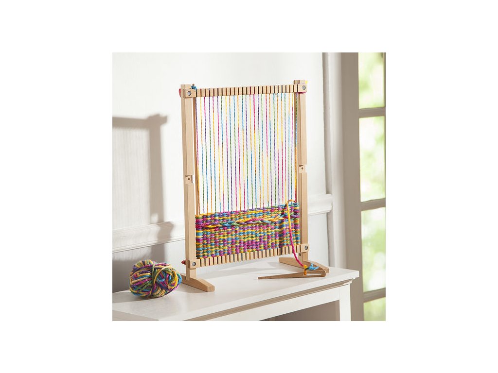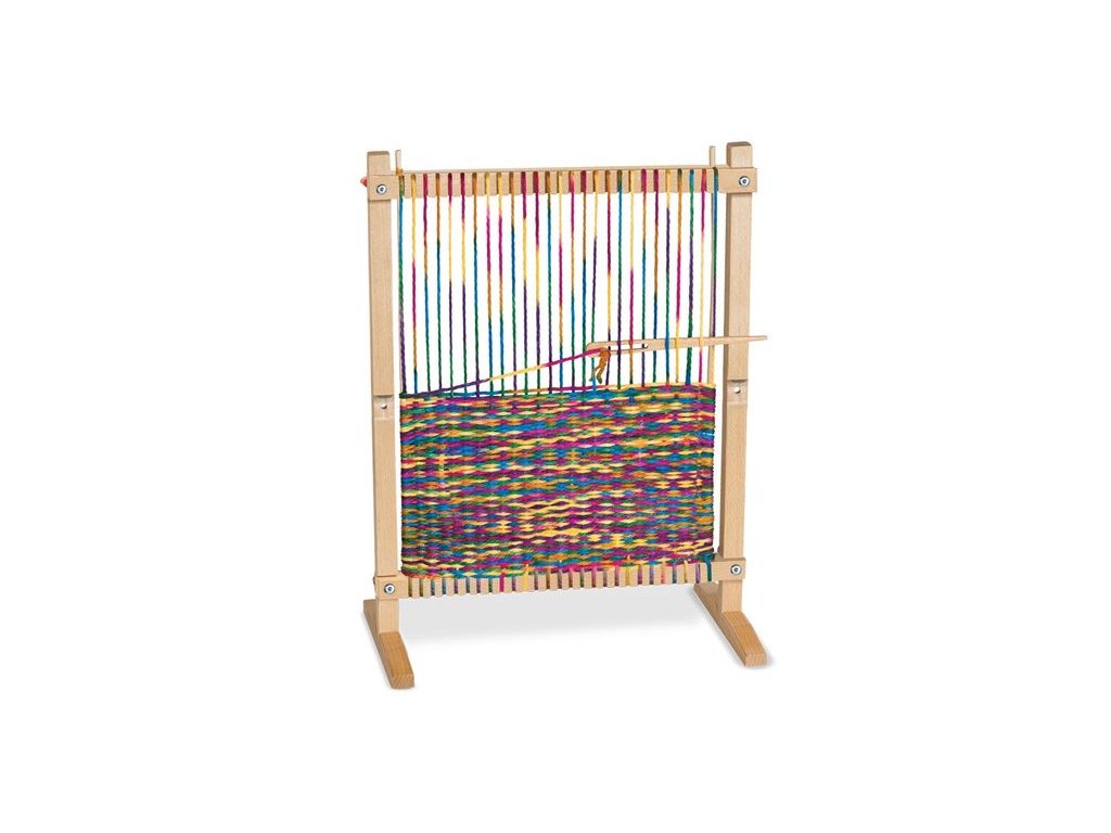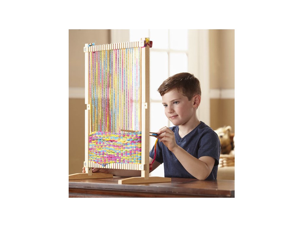 Tato tkalcovská sada all-inclusive obsahuje náčiní a materiály, které děti potřebují pro výrobu šátku, tašky, podnosu, pytlíků a tři obrazové tapisérie ke tkaní. Velký tkalcovský stav je snadný na ovládání, tkaná příze v barvách duhy vypadá krásně a obrazové tapisérie jsou snadné i pro tkaní začátečníků. Pevný tkalcovský rám lze použít s téměř jakýmkoliv materiálem, které děti mají: stuhy, proužky tkanin, provázky a mnoho dalšího. Obrázkový návod k použití napoví, jak používat tkalcovský stav pro různé druhy tkaní. Je to nejlepší způsob, jak přiblížit dětem staré řemeslo.