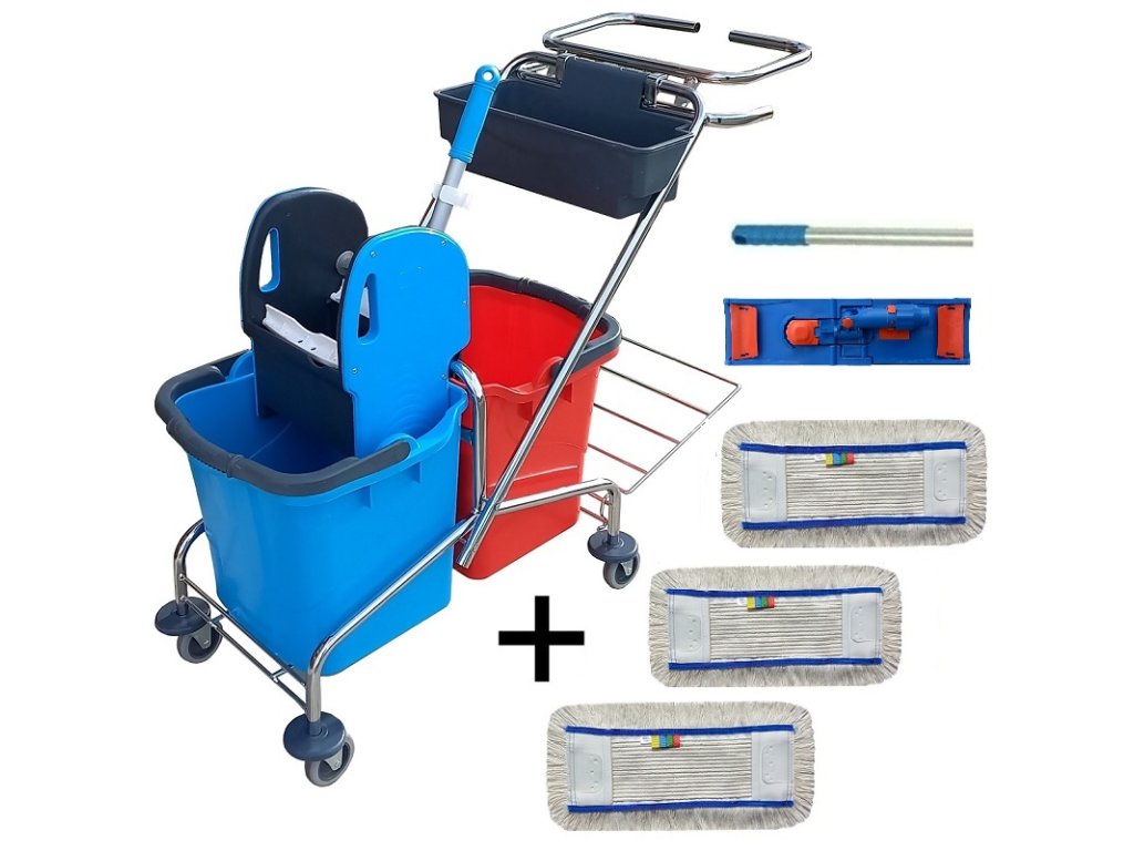 Úklidový vozík DOUBLE VAK 2x25l + FLIPPER Mop sestava se 3mi návleky 40cm