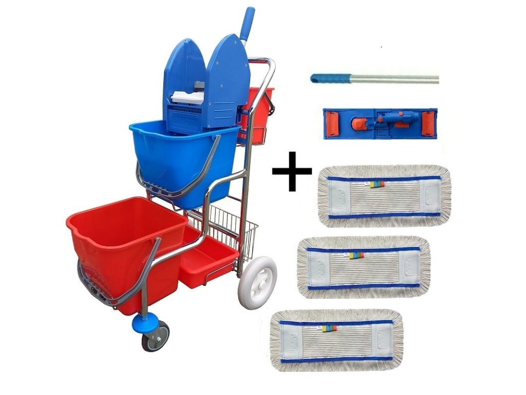 Úklidový vozík DUO PRAKTIK III + FLIPPER Mop sestava s 3mi návleky 40cm