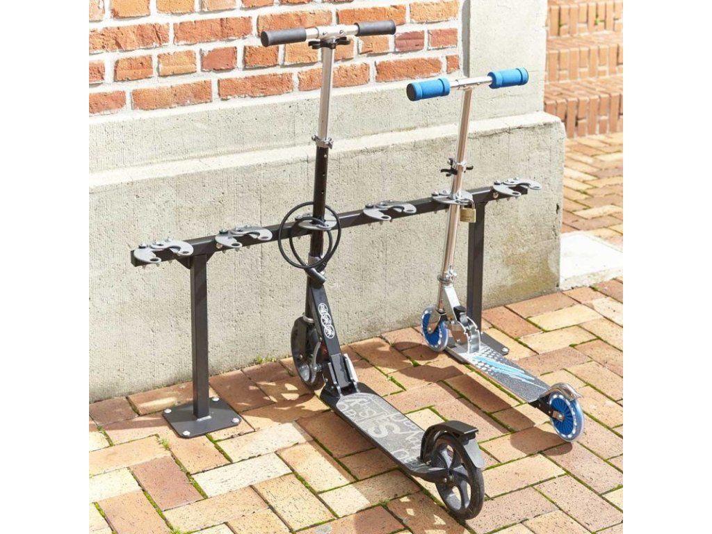 - stojan na koloběžky je ideální pro školky, školy, sportoviště, veřejné budovy a podobně
