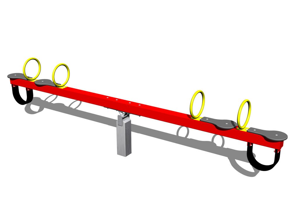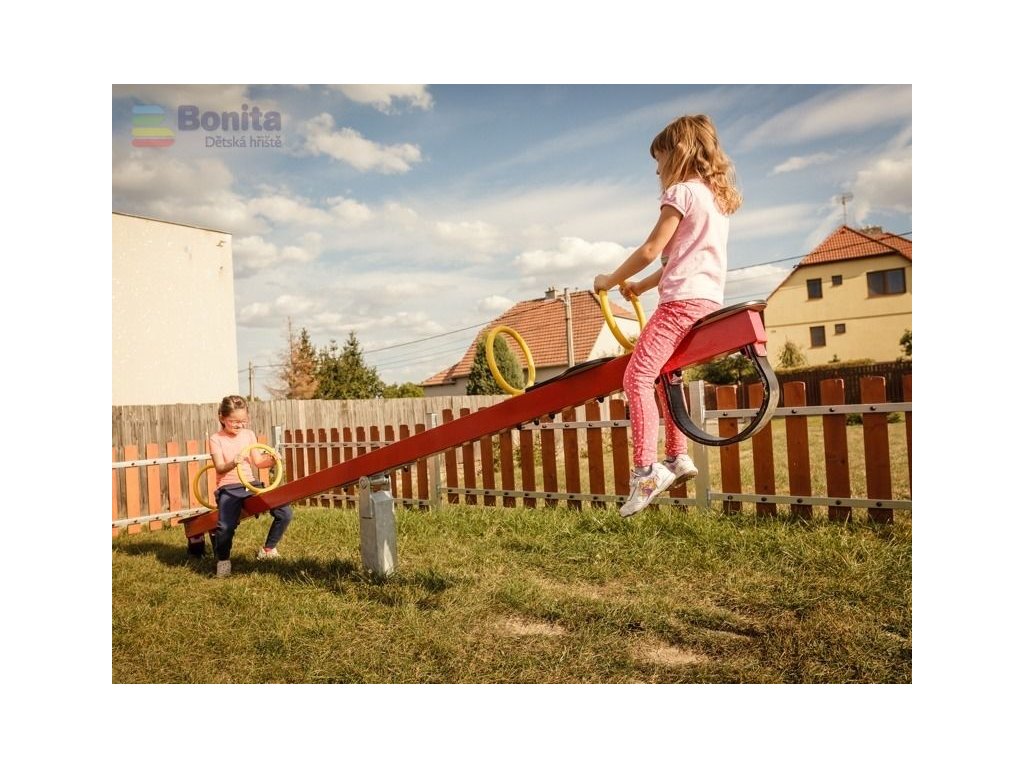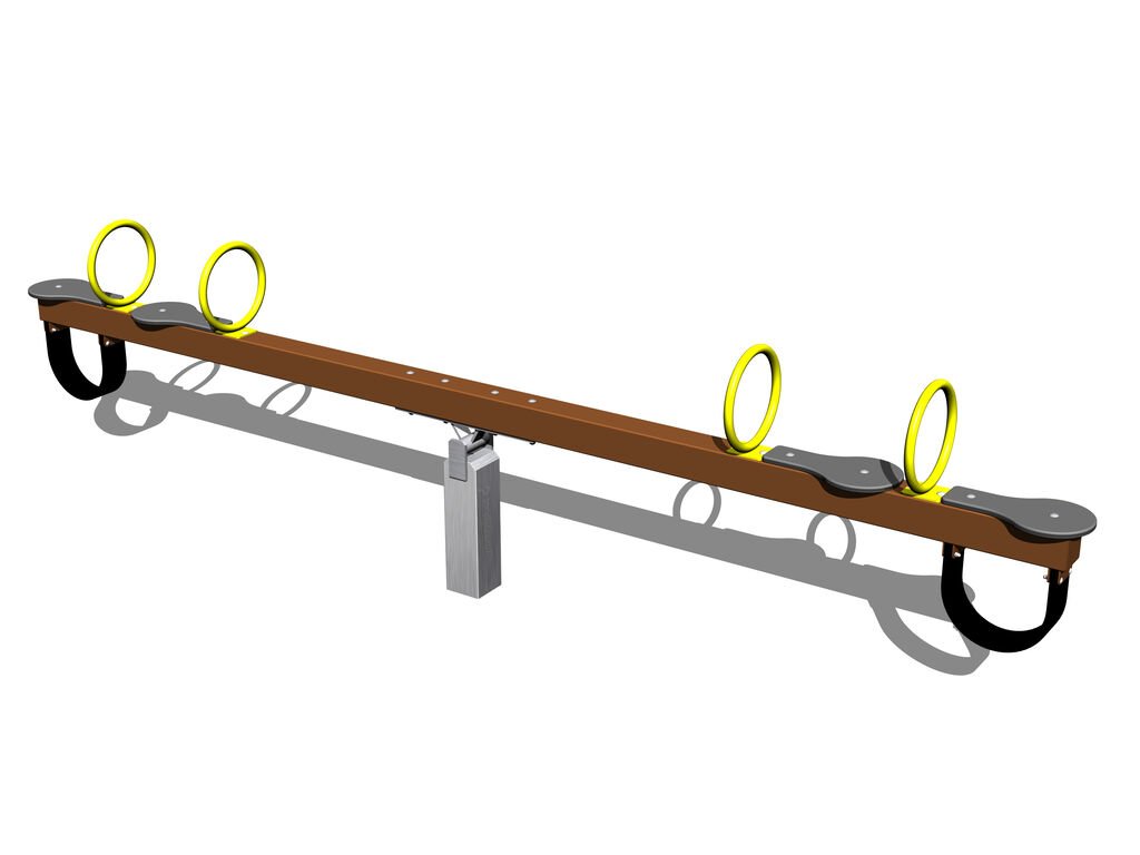 Rameno houpačky je vyrobeno z konstrukční oceli (kovový profil 100 x 100 mm), která je proti korozi chráněna povrchovou úpravou zinkováním, čímž se docílí velmi výrazného prodloužení životnosti herního prvku a vypalovanou barvou KOMAXIT dle odstínu RAL, je ukotvena vratovými šrouby do nosné konstrukce. Nosná konstrukce houpačky je ocelová a je proti korozi chráněna žárovým zinkováním a uložena do betonového lože.