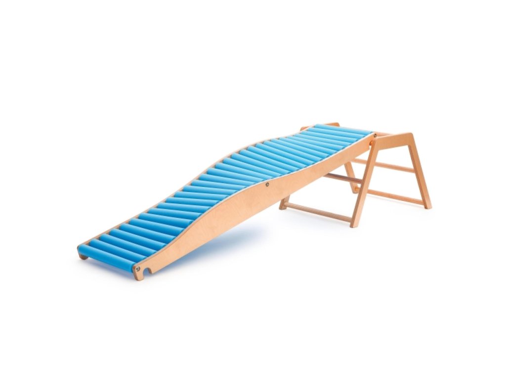 Válečkovou skluzavku lze připevnit na trapézovou stoličku nebo žebřiny. Kromě rozvíjení rychlosti reakce a hmatového vnímání mohou děti hravou formou překonávat strach z výšek.