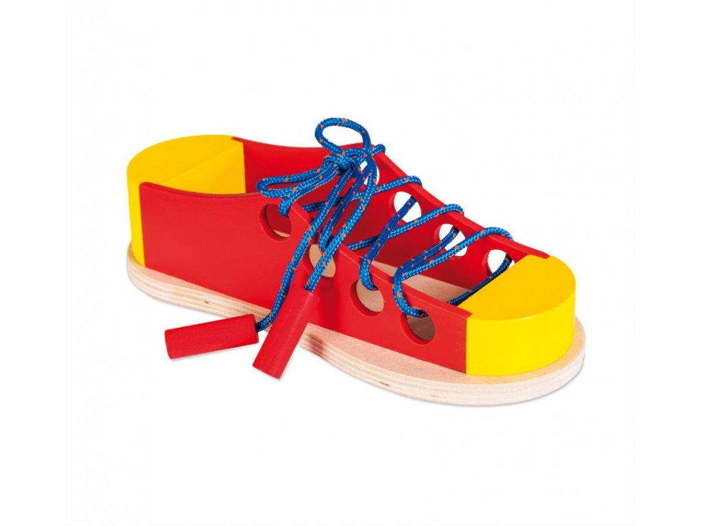 - dále podporuje kreativitu dětí, tkaničku lze protáhnout různými způsoby a tvořit různé kombinace zavazování