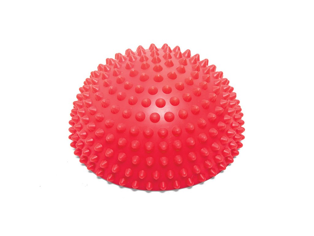 - Velká polokoule s kolíky užitečná pro rehabilitaci nohou, trénink koordinace a pro zlepšení schopnosti udržet rovnováhu