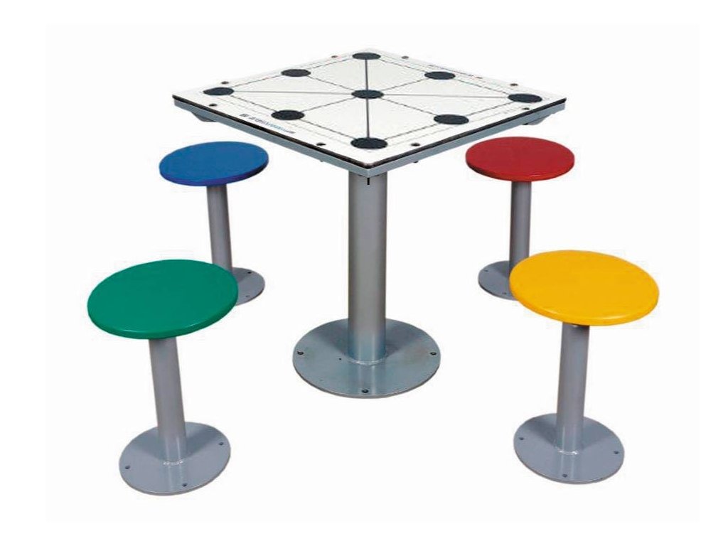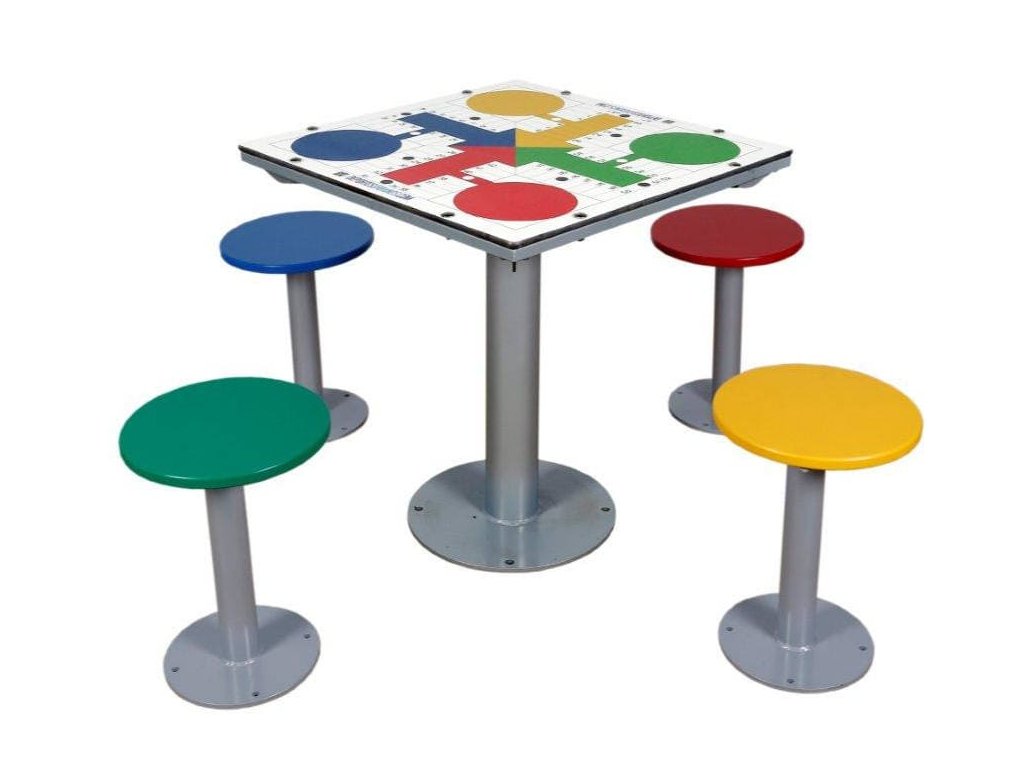 Herní stůl MMCCG4 má 4 lavice z pozinkované oceli a kompaktní digitálně potištěnou desku / sklolaminátovou desku pro hraní šachů, parcheesi, husy a piškvorek. Na herní plán lze zahrnout jakýkoli typ hry, buď společně nebo jednotlivě.