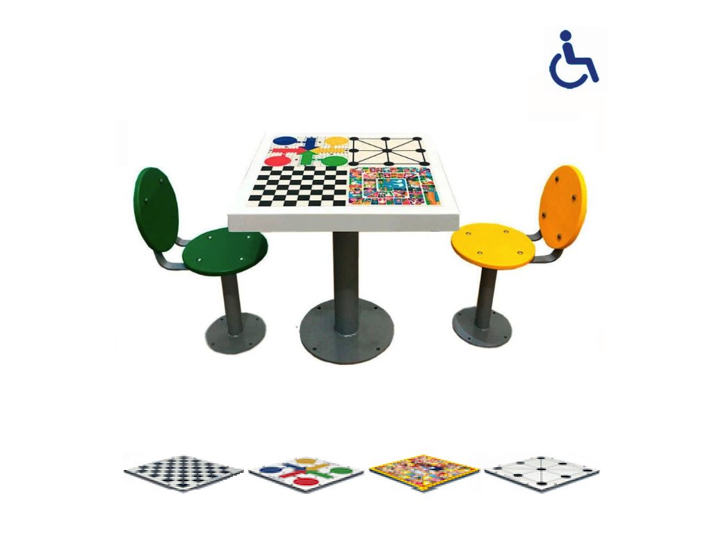 Náš herní stůl, certifikovaný pro veřejné a komerční použití , je ideální pro instalaci na náměstích, městských parcích, školách, vysokých školách, univerzitách, hřištích, kempech, hotelech, zahradách a obecně v jakémkoli venkovním prostoru pro volný čas a sport .