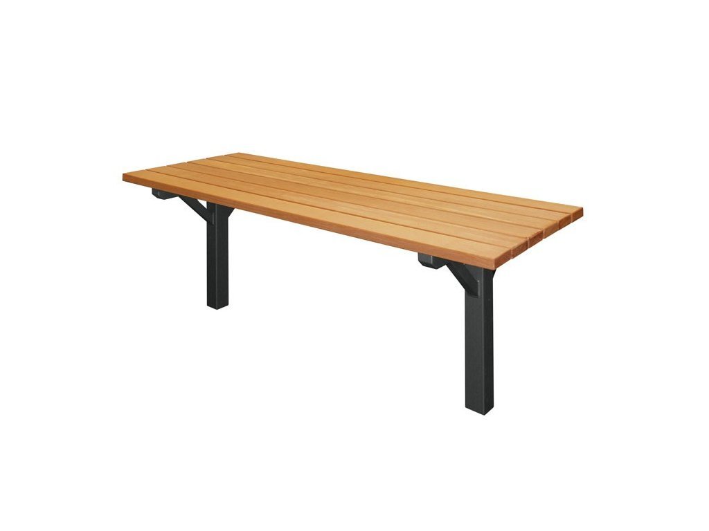 Venkovní stůl Karin z kovovou konstrukcí a dřevěnými latěmi které jsou upraveny 3 x lazurou ,kovové části stolu ošetřeny vypalovanou barvou nobo žárově zinkovány.Kotvení stolu šrouby nebo verze určená pro zabetonování.