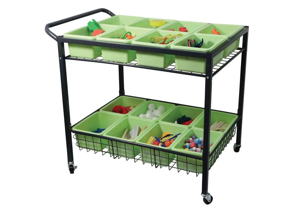 Praktický vozík na kolečkách se skládá z 16 otevřených úložných boxů. Je ideální na odkládání a snadné přemístění různých výtvarných pomůcek.