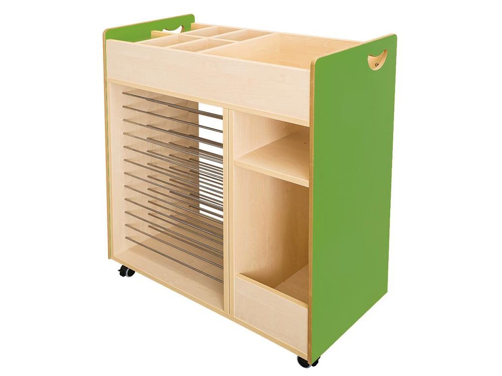 Vozík na výtvarnou výchovu se sušákem na výkresy - zelený