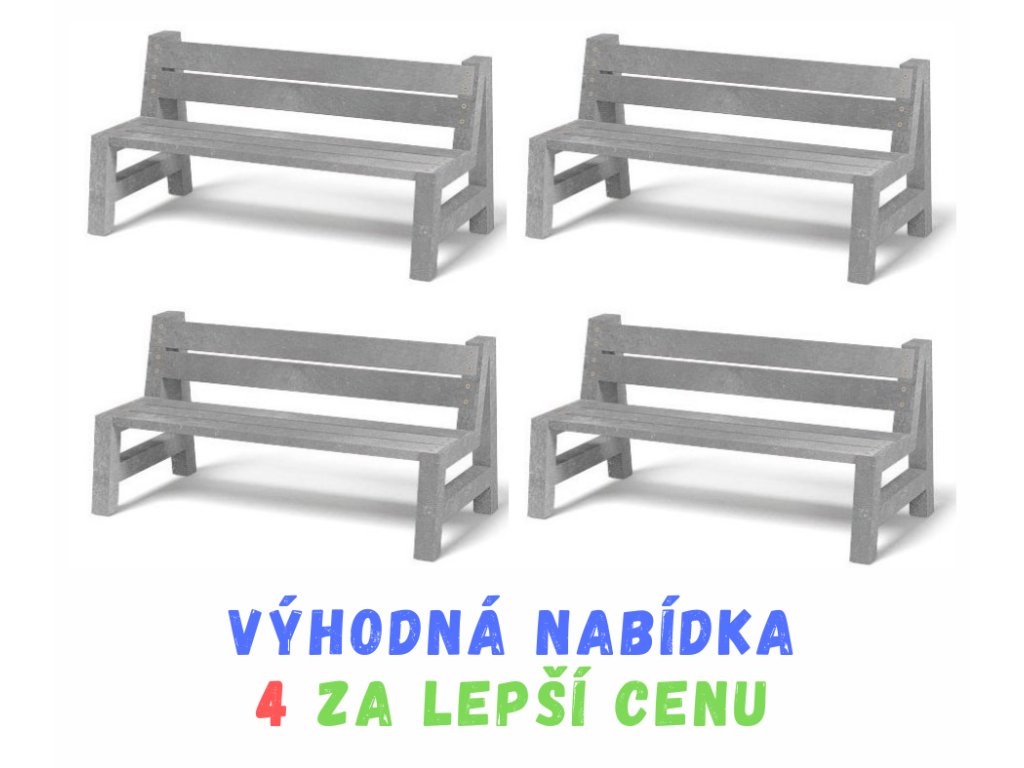 VÝHODNÁ NABÍDKA - 4 x NEZNIČITELNÁ parková EKO lavička Viky IV. - šedá