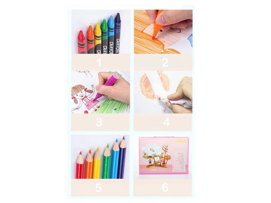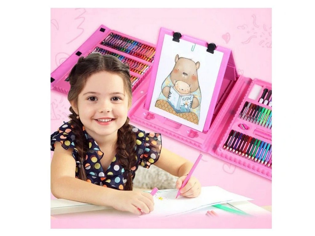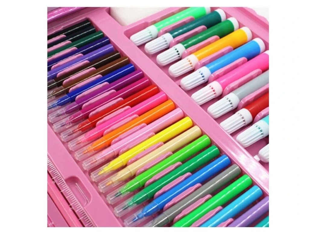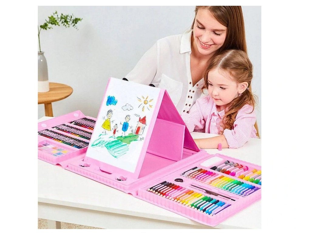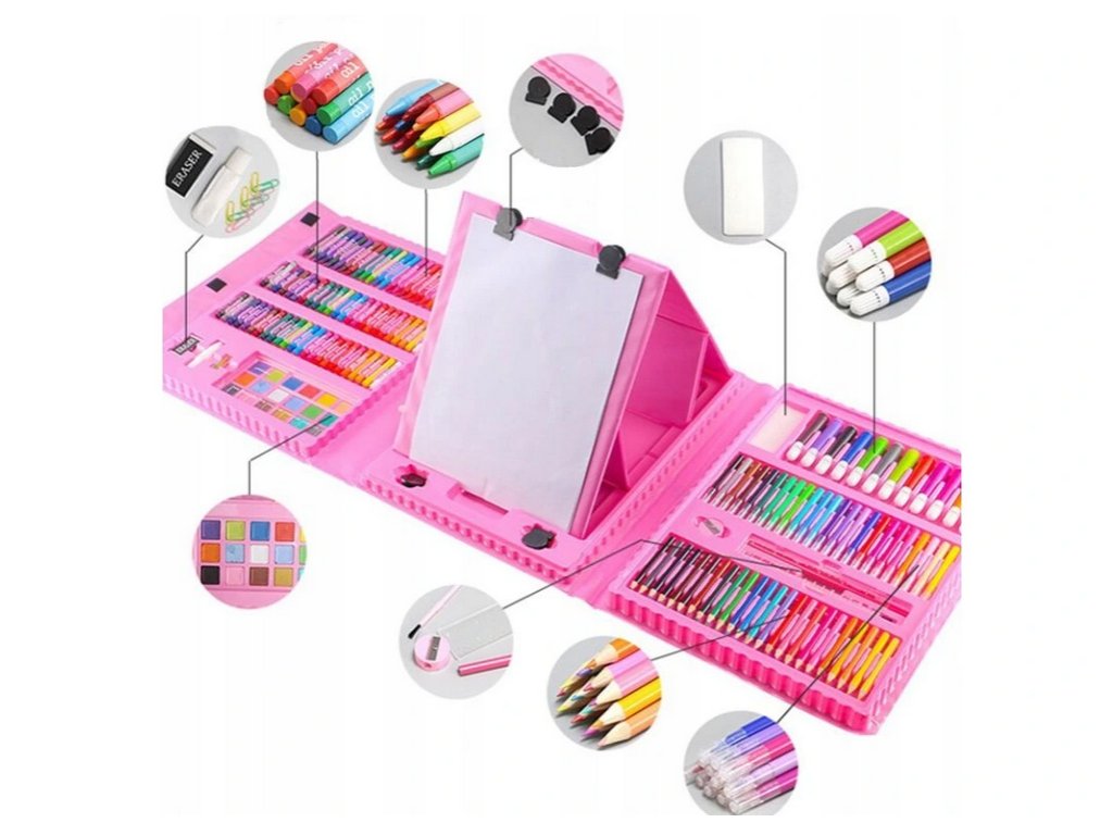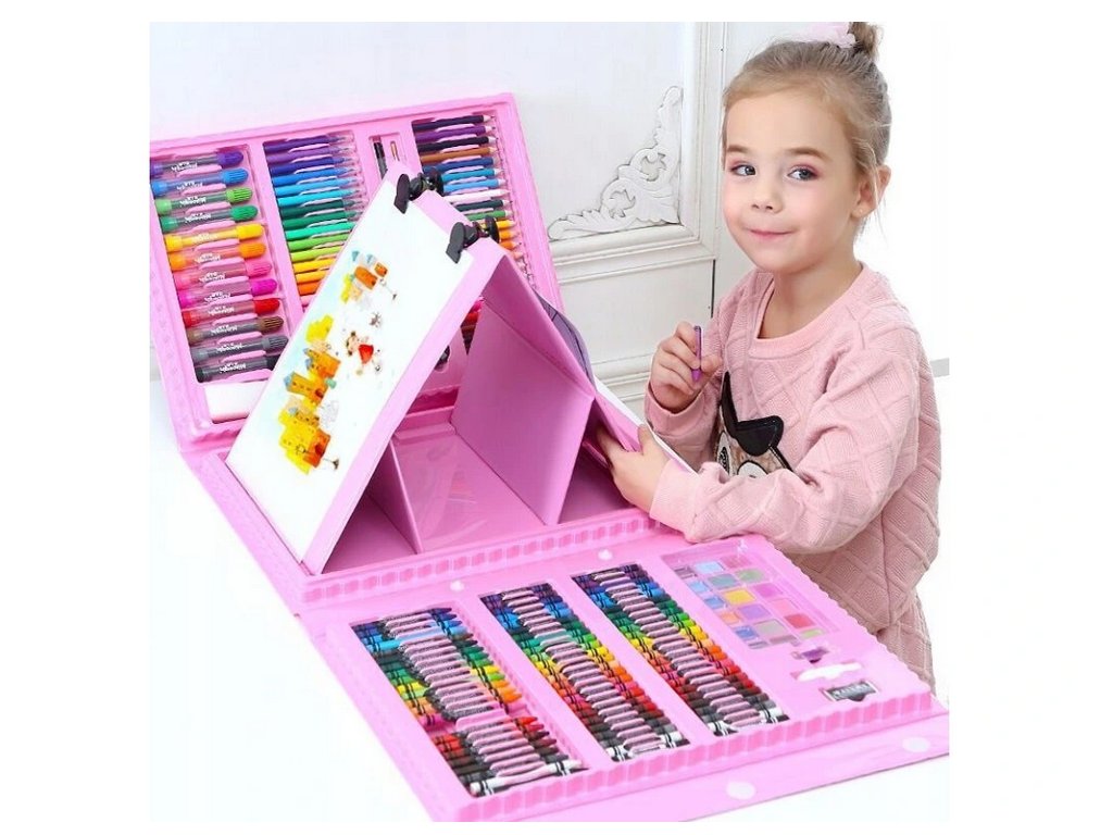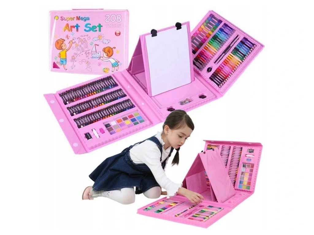 Výtvarná sada na malování v kufříku 208 ks. V této umělecké sadě si každý najde to své - barvení per , pastelky na kreslení a barvy na malování. To vše v sytých barvách, které vypadají skvěle na papíře. Vše je uzavřeno v pohodlném kufru, který lze snadno složit, zavřít a vzít s sebou - do školy , školky, na hodiny výtvarné výchovy nebo na výlet malovat venku. Bohatá paleta barev a různé druhy nástrojů dobře poslouží při skicování, barvení atd.. Pastelky, pastely a fixy jsou ve vynikající kvalitě. Pera, která si zachovávají své vlastnosti po dlouhou dobu. Fixy a pastelky ve velikostech vhodných pro dětskou ruku. Pera lze snadno vyjmout z hladkých omyvatelných povrchů. Široká škála barev. Praktické pouzdro pro organizaci a přenášení.