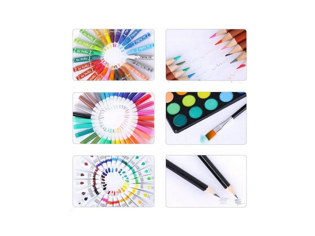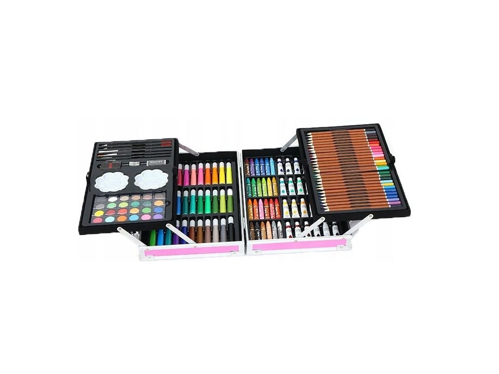 Sada na malování a kreslení je umístěna ve vyhrazeném kufříku - hliníkovém kufru. Má reliéfní přihrádky na pastelky, fixy, barvy a doplňky. Skládá se ze čtyř částí – boční jsou vyvýšené police pro lepší přístup k obsahu.