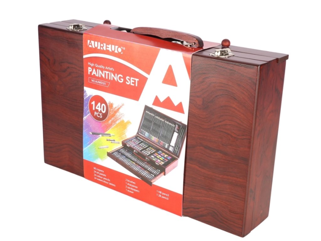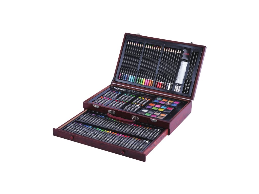 Velký "školní" kufřík obsahující vše pro základní výtvarnou výchovu. Doporučujeme zejména pro první stupeň ZŠ nebo tvoření s dětmi doma. Výhodou této sady je mimo jiné bytelný dřevěný kufřík, do kterého lze všechny pomůcky uložit.