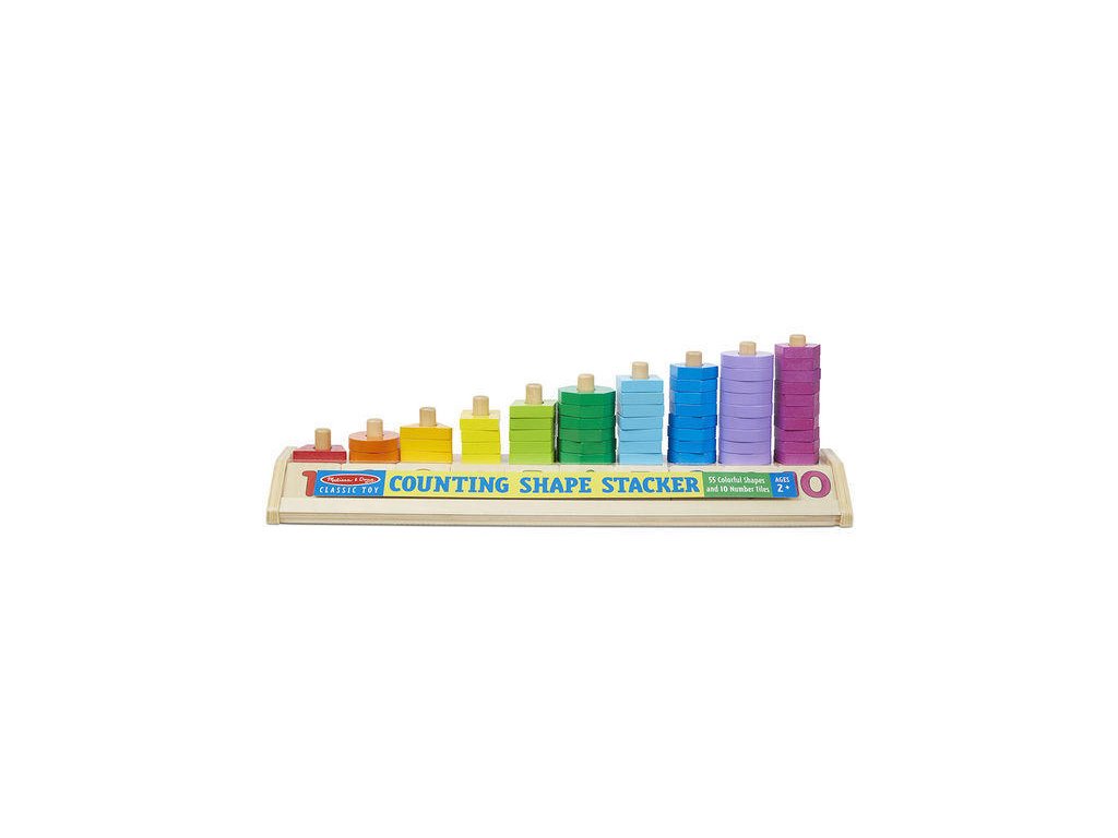 Balení obsahuje: 55 barevných tvarů a 10 dřevěných kostiček s čísly