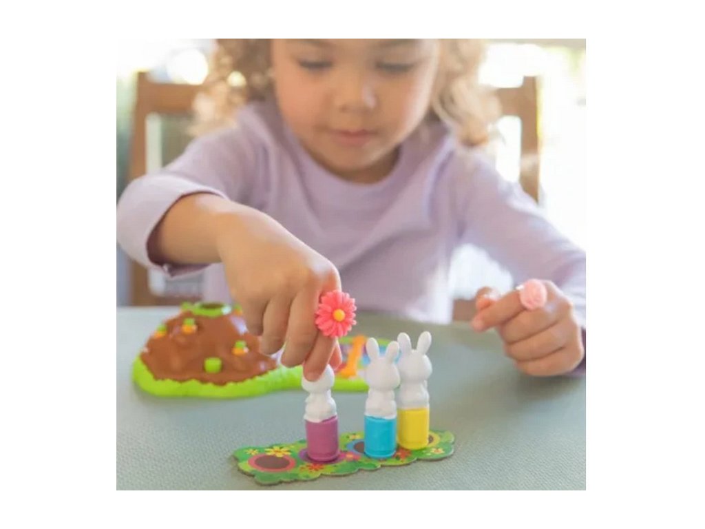 Vzdělávací hra Learning Resources Pop Pop Bunny Hop učí děti barvy, počítání a jemnou motoriku zábavnou formou.