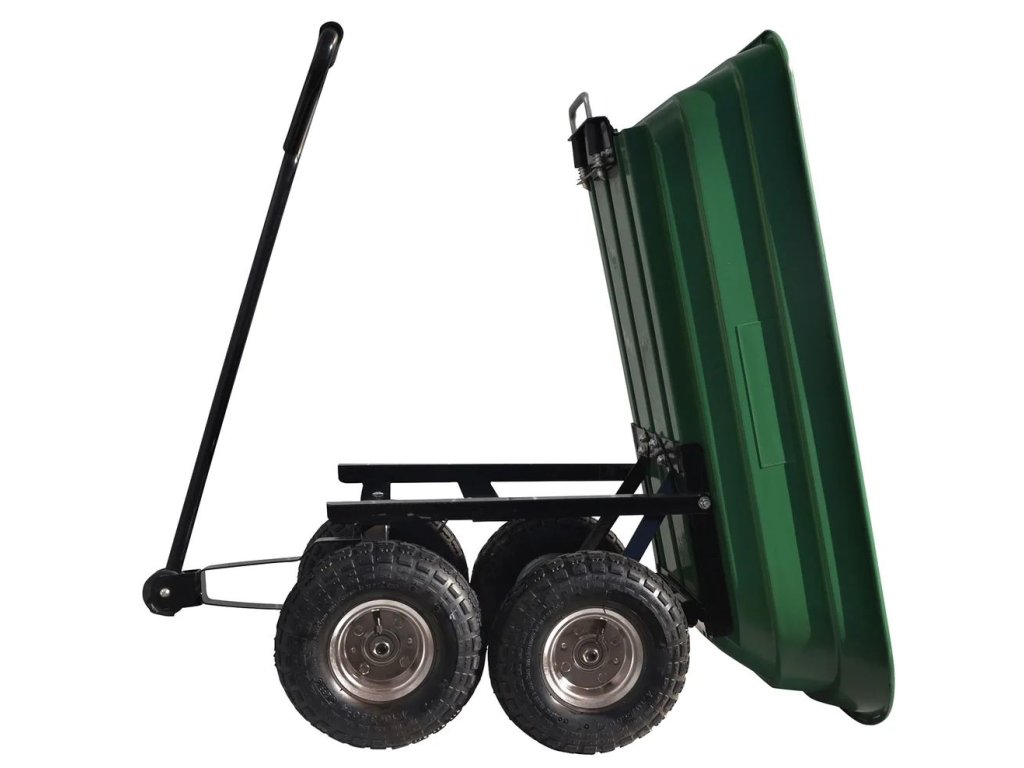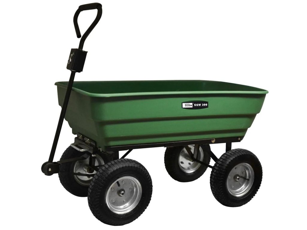 Robustní tažný vozík, vhodný pro přepravu trávy, sena, zahradních odpadů, dřeva a zeminy. Má skvělé využití v okolí domu, na dvoře i po zahradě. Vozík má velmi stabilní ocelový podvozek a vyklápěcí korbu z tvrdého plastu.