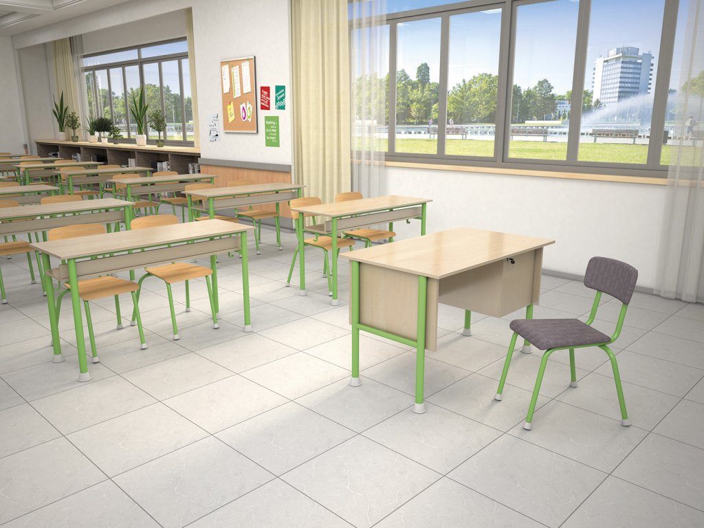 Dvojmístná žákovská lavice má konstrukci vyráběnou z ocelové trubky o průměru 40 mm, konstrukce jsou opatřeny plastovými koncovkami.