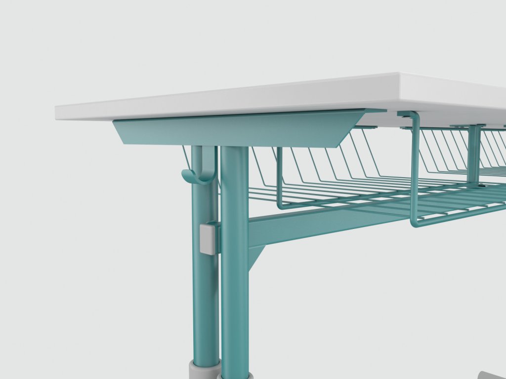 Deska stolu: přírodní dřevotřísková deska tl. 18 mm po obou stranách opatřena dekoritem (na spodní straně dekorit v bílé barvě, horní strana dekorit ve volitelných barvách) hrana ABS tl. 2 mm.