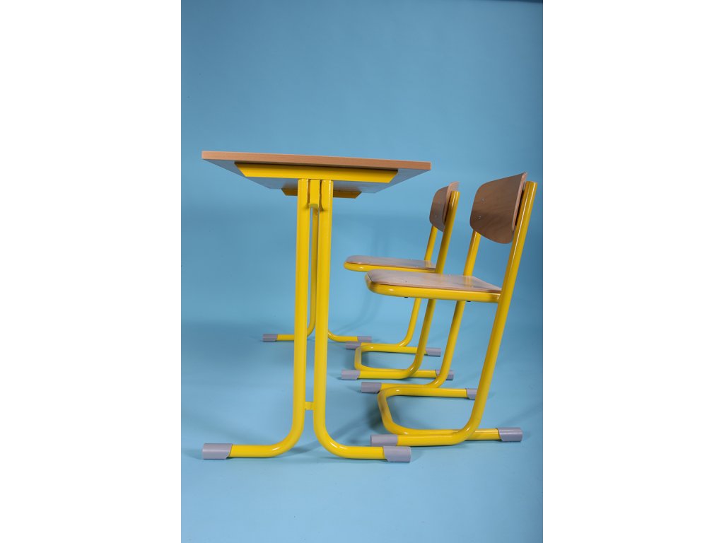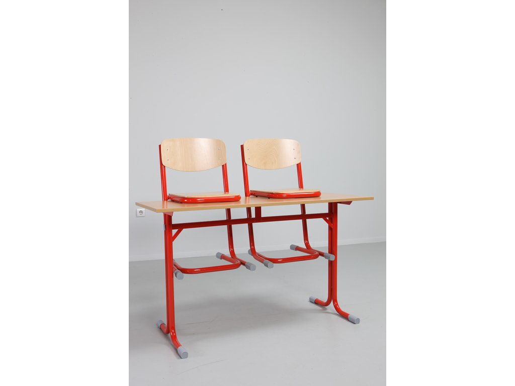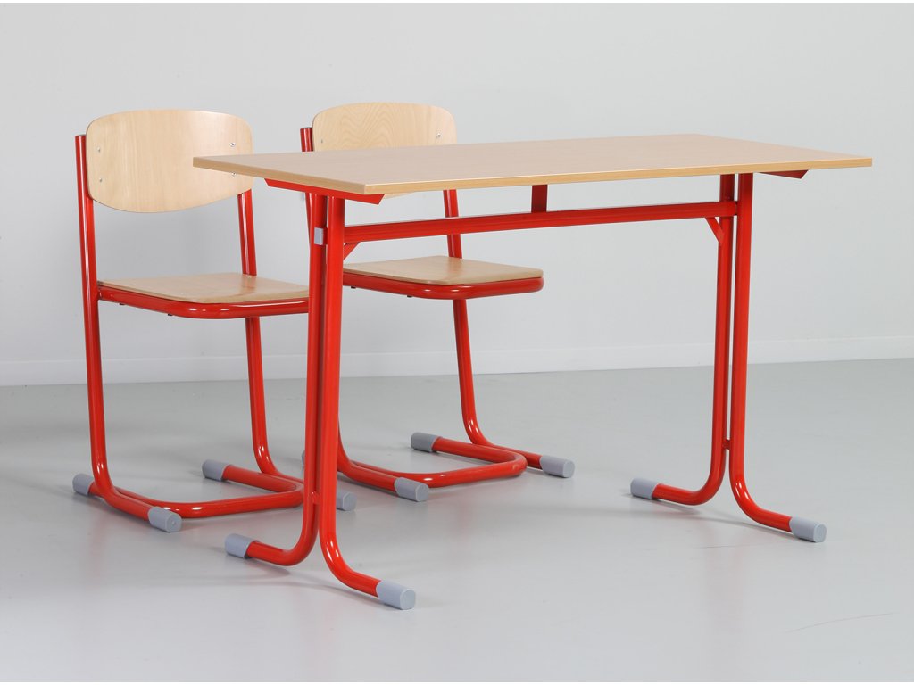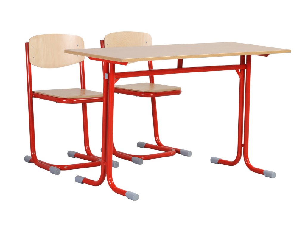 Stoly mají zesílenou křížovou konstrukci pro zvýšení stability, deska stolu je z laminované dřevotřísky o tl. 18 mm a je opatřena plastovou hranou o tl. 2 mm.