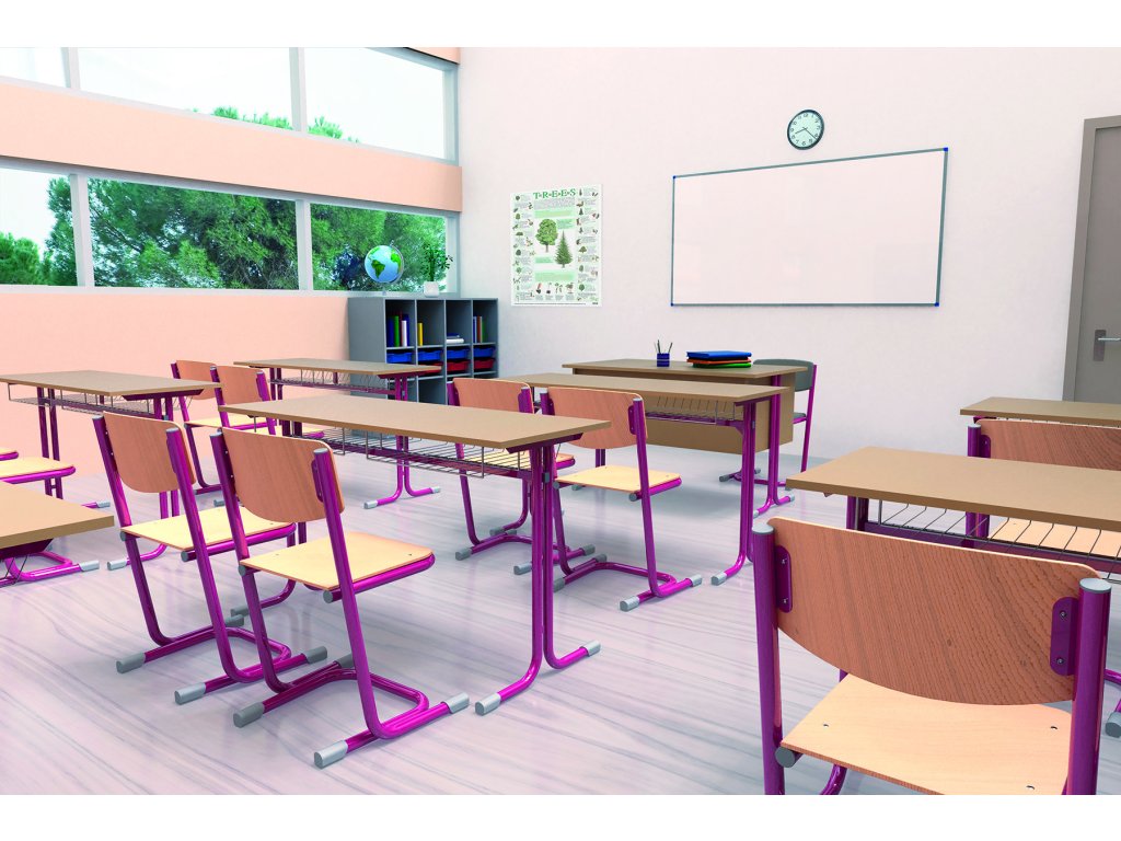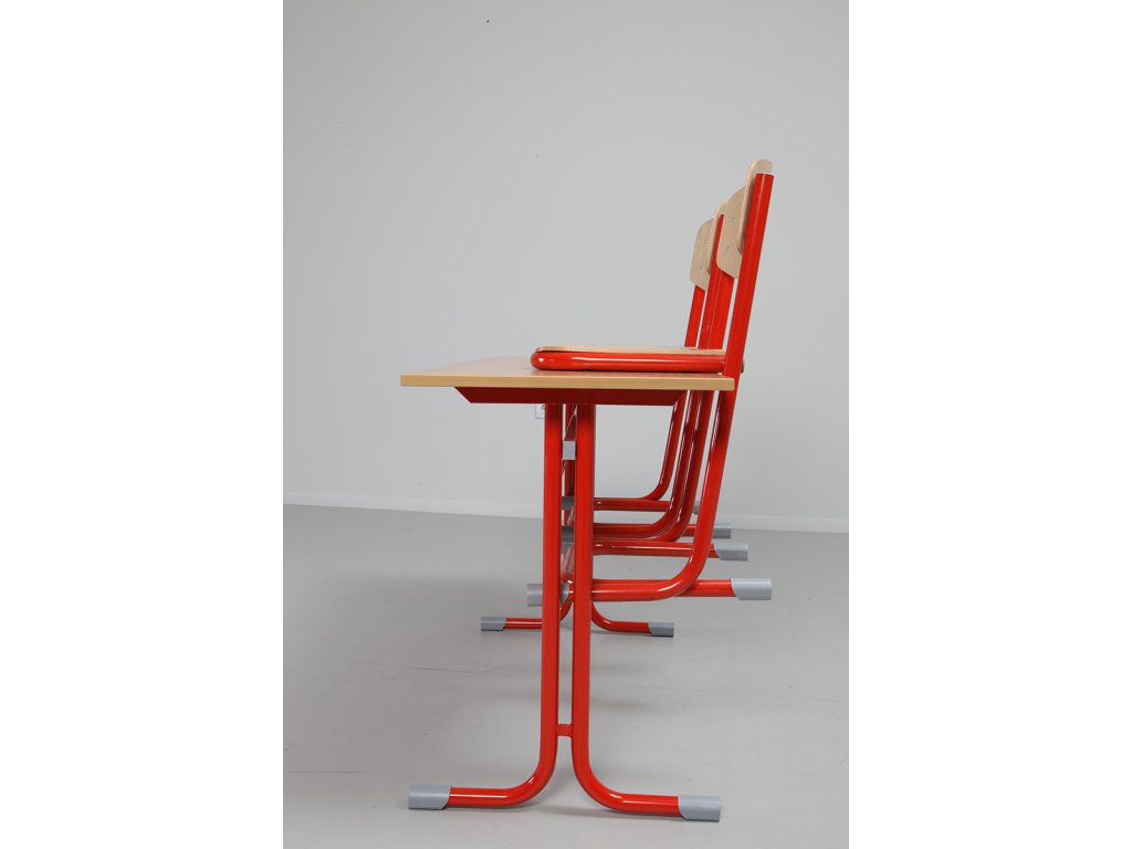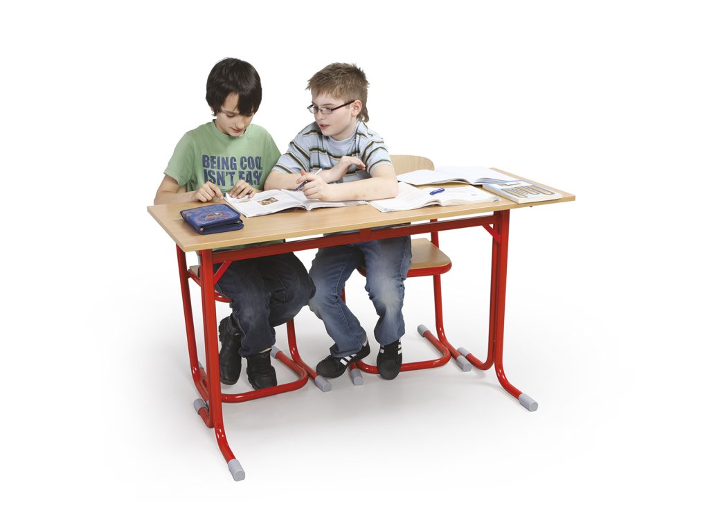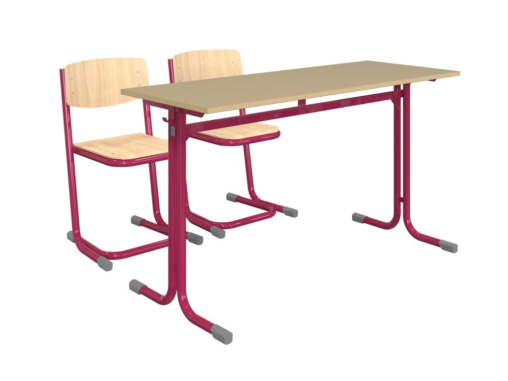 Stoly mají zesílenou křížovou konstrukci pro zvýšení stability, deska stolu je z laminované dřevotřísky o tl. 18 mm a je opatřena plastovou hranou o tl. 2 mm.