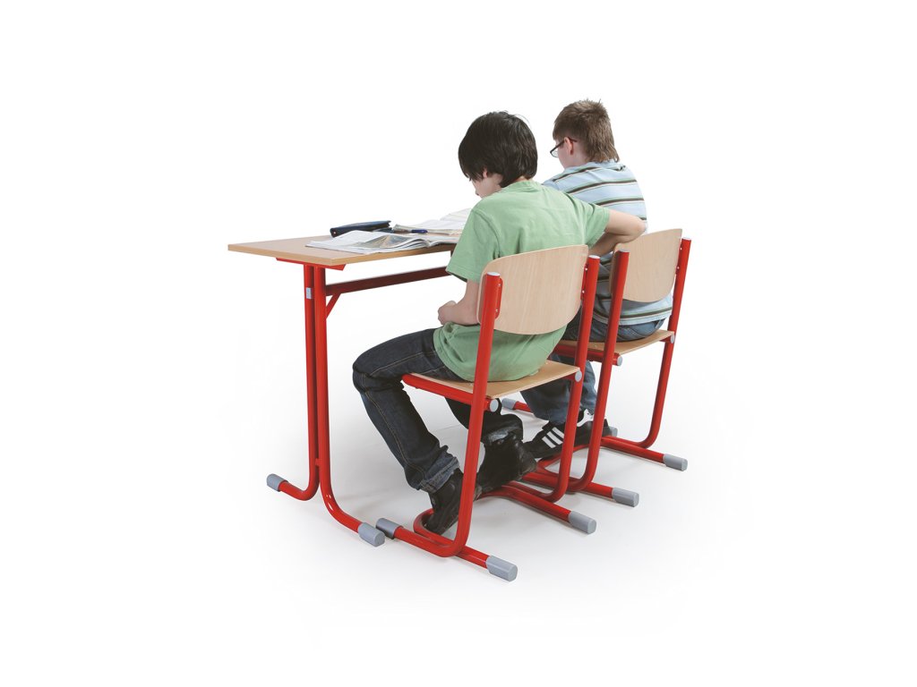 Stoly mají zesílenou křížovou konstrukci pro zvýšení stability, deska stolu je z laminované dřevotřísky o tl. 18 mm a je opatřena plastovou hranou o tl. 2 mm.