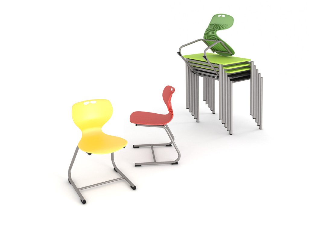 Konstrukce stolů: ocelová trubka o průměru 40 mm, plastové koncovky, v provedení s kolečky.