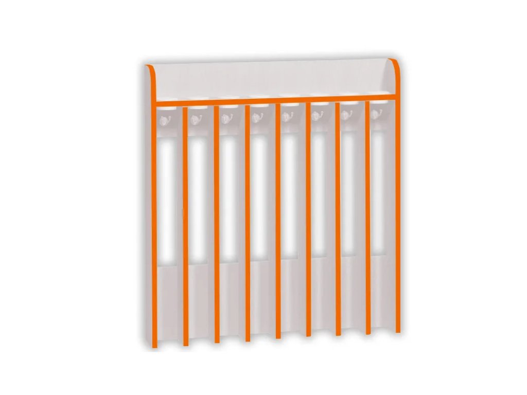 Závěsná koupelnová police s kelímky je navržena pro provoz v koupelnách mateřských škol.
