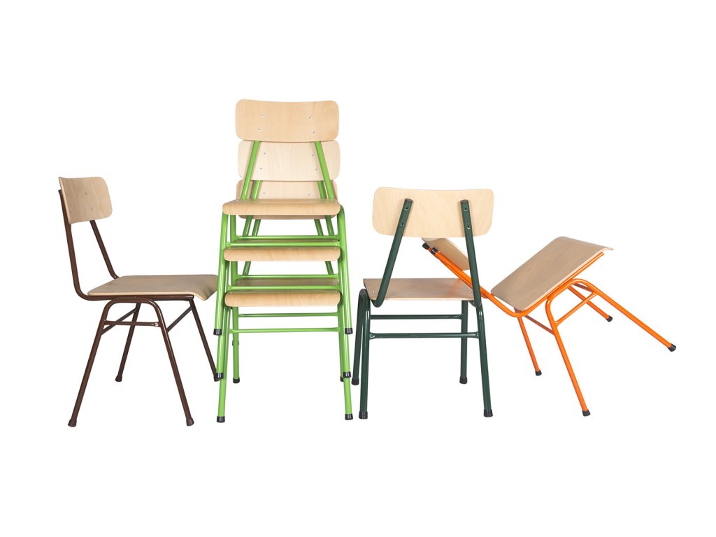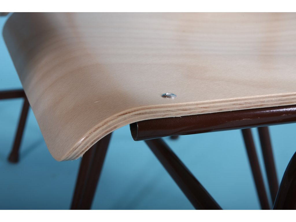 Barvená ocelová trubková konstrukce 18 × 1,2 mm, sedák a opěradlo z lakované bukové překližky, plastové koncovky.